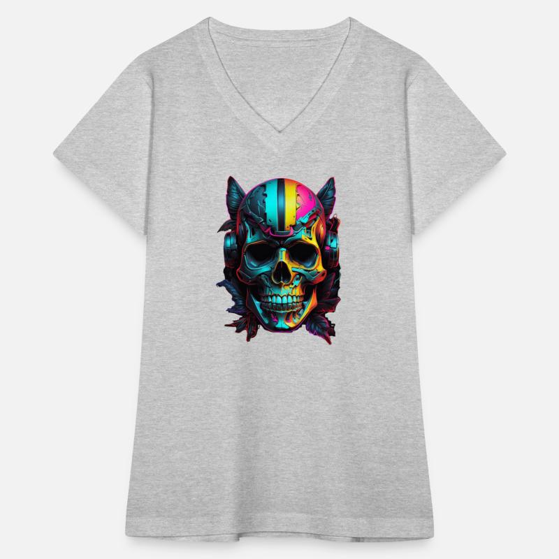 Black and Neon Skull Graphic T-Shirt - Edgy Goth